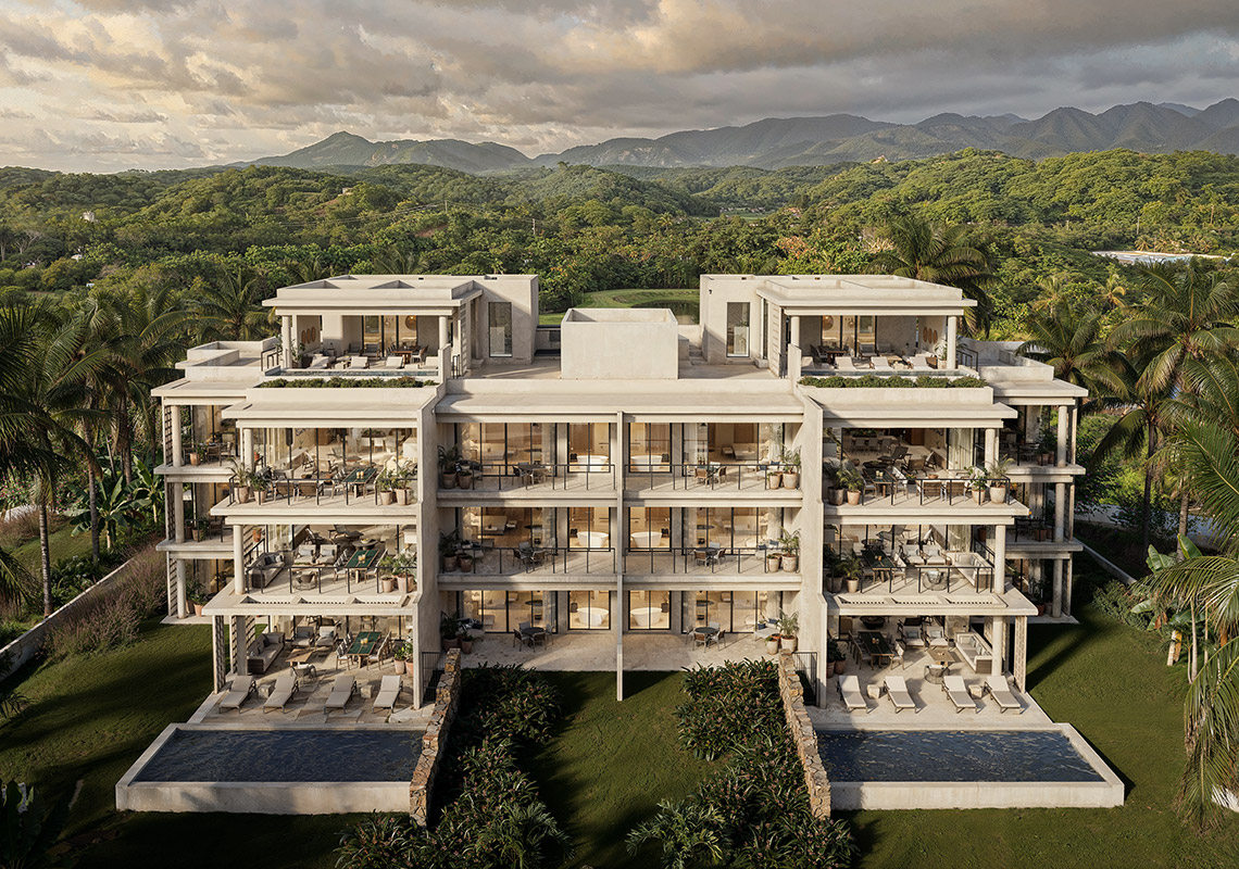 Situated on the sparkling Riviera Nayarit, the resort sits on a bluff fringed by tropical jungle that tumbles down to an intimate white sand beach, where warm breezes ruffle hammocks, surfers ride waves, a surfers paradise for all ability levels, and perfect sunsets end each extraordinary day. Inspired by the rustic simplicity of sand, sea, and jungle, the hotel’s guest houses and residences are designed in harmony with nature, treading lightly on the land and honoring the spirit of nomadic luxury that has drawn surfers and beachgoers to the region for decades.