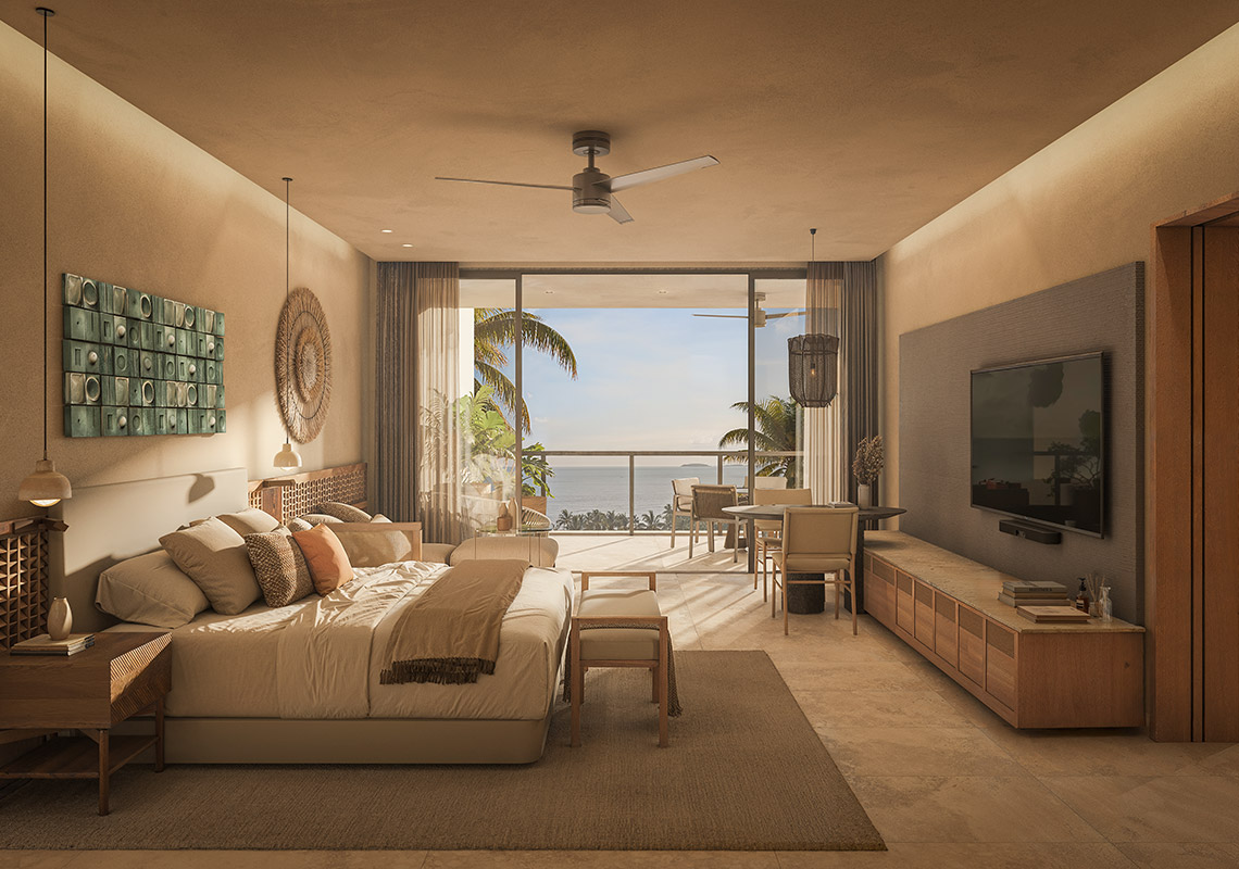 With breathtaking views of the Pacific Ocean and the Marietas Islands in front, and serene lake and mountain views behind, the Oceanview Residences capture the essence of coastal living from every perspective.