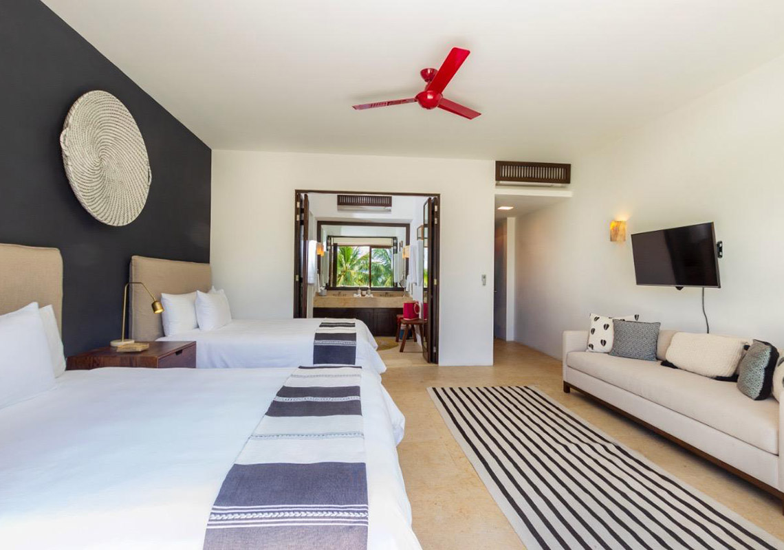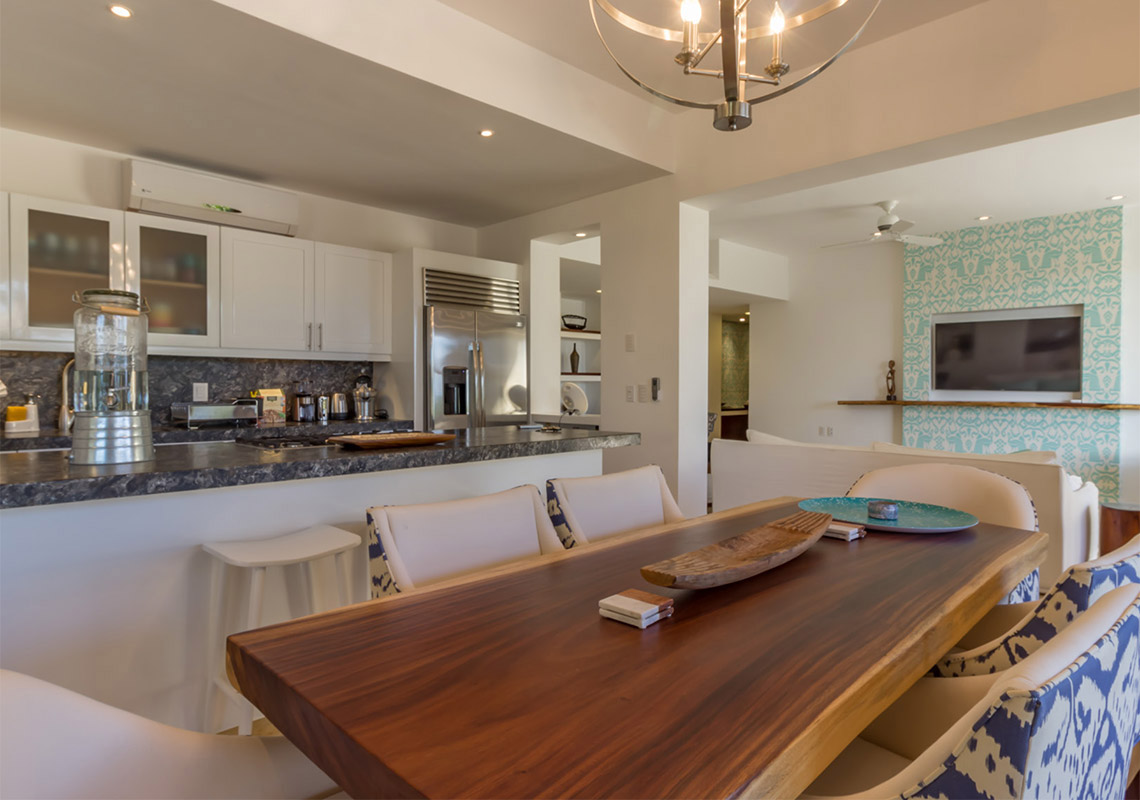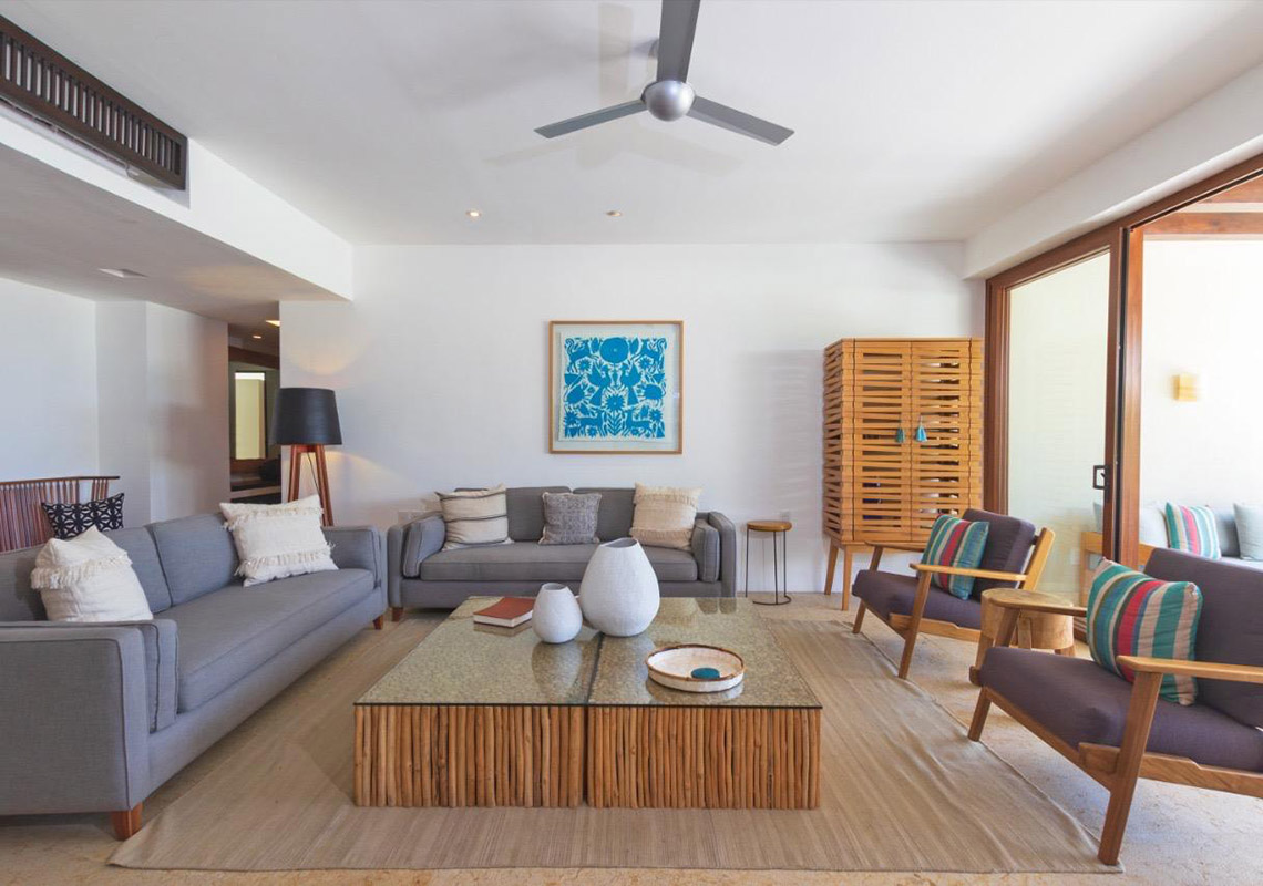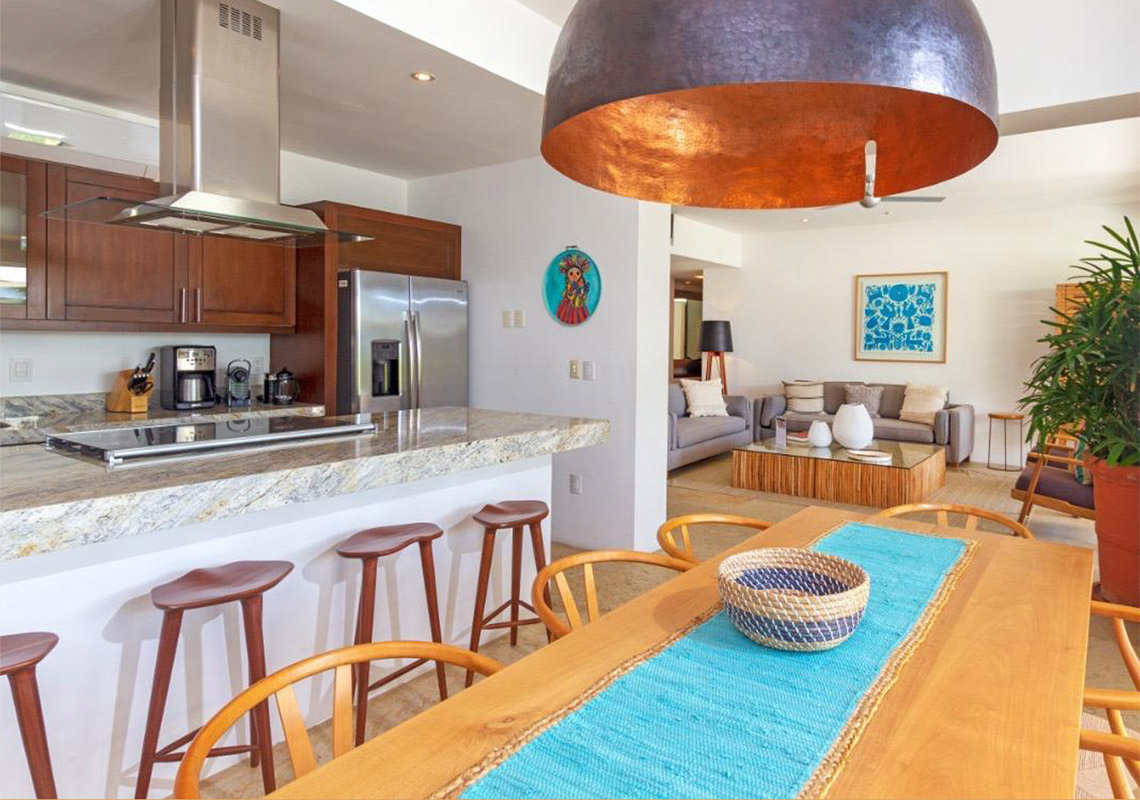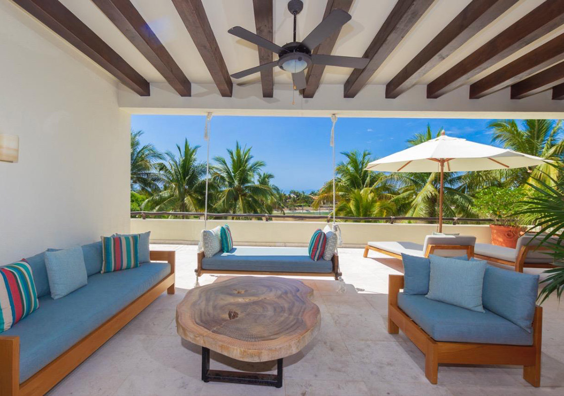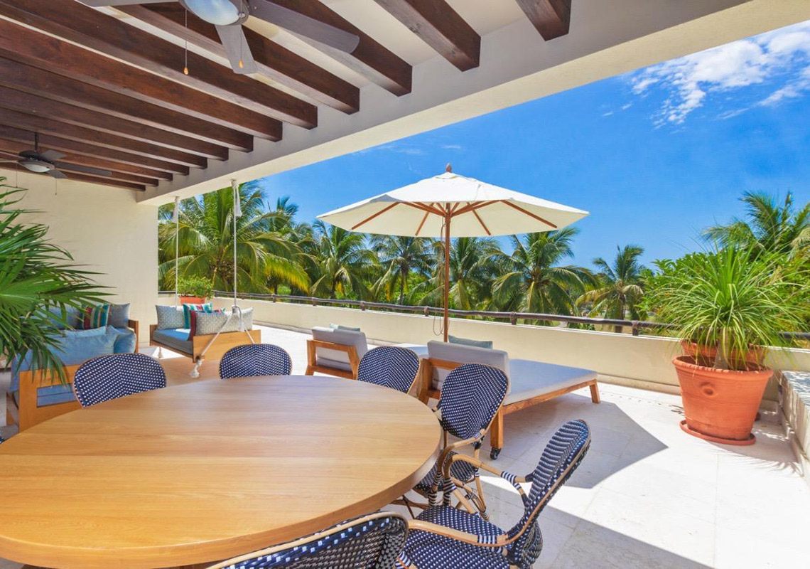 Golf course and serene views abound as you enter this lovely Las Terrazas condominium. This spacious unit features 2.5 bedrooms and 3.5 bathrooms, with a large terrace and expansive windows that seamlessly merge indoor and outdoor living spaces. Tastefully decorated in an elegant Mexican style, this condo is located in the heart of Punta Mita. Part of Las Terrazas, an exclusive boutique complex, it sits along the 14th fairway of the renowned Jack Nicklaus Signature Pacifico Golf Course.