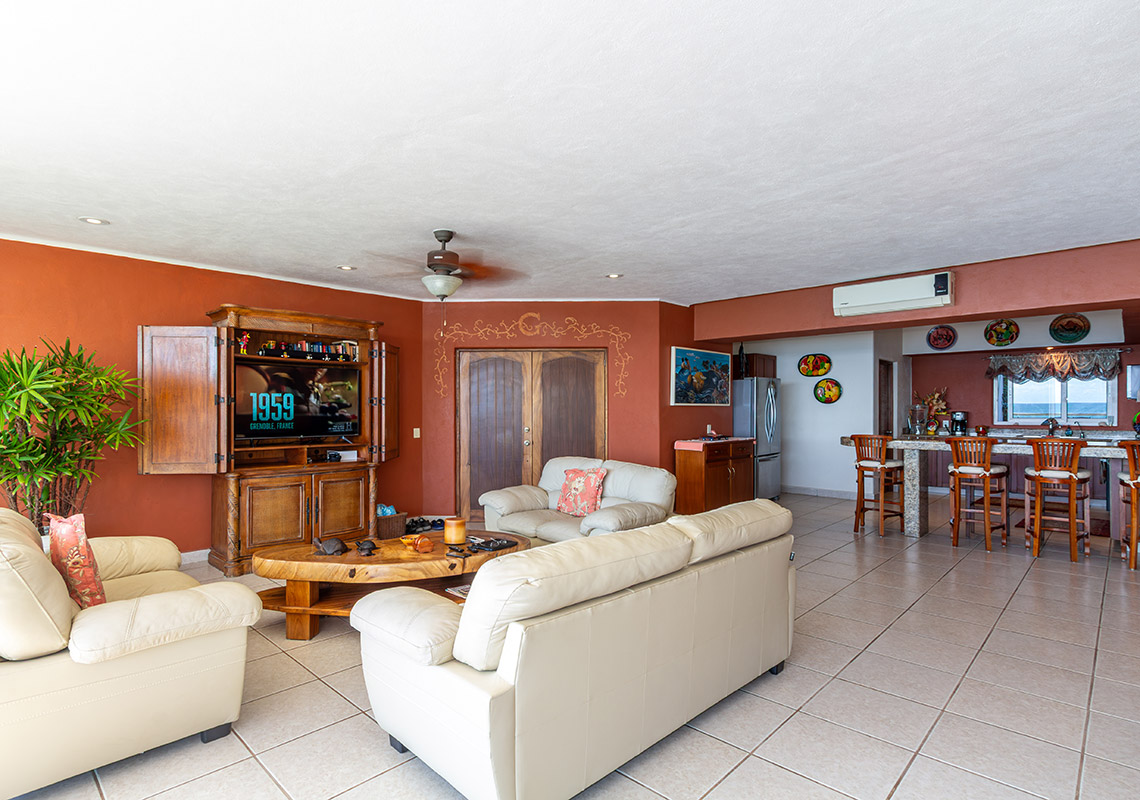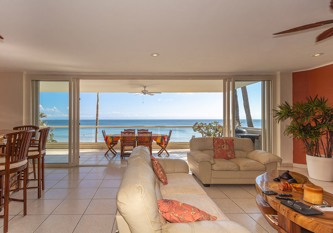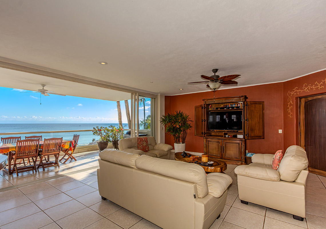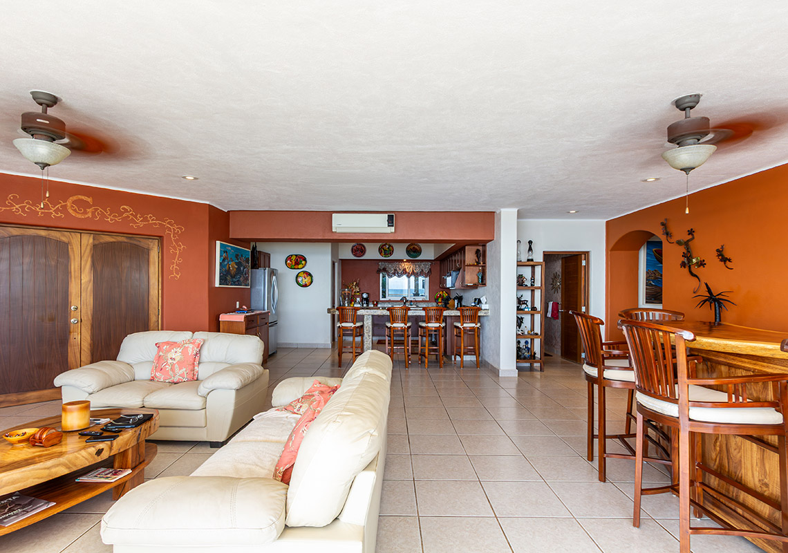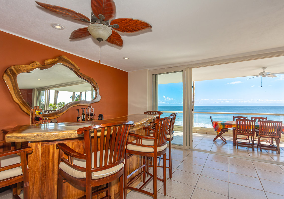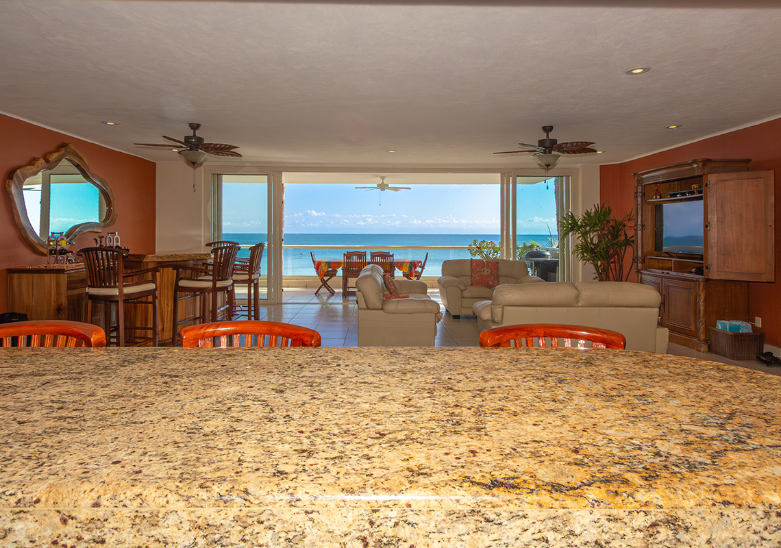 From the moment you enter, floor-to-ceiling glass doors seamlessly connect the Pacific Ocean with the interior living spaces, opening naturally onto a spacious private terrace. This area becomes the heart of the home — perfect for oceanfront breakfasts, quiet afternoons with a book, gatherings with friends, or dinners framed by unforgettable sunsets with views of the Marietas Islands and Banderas Bay.
