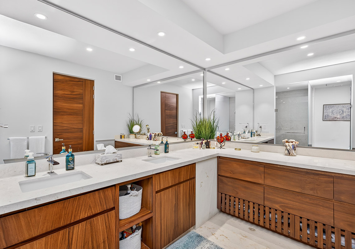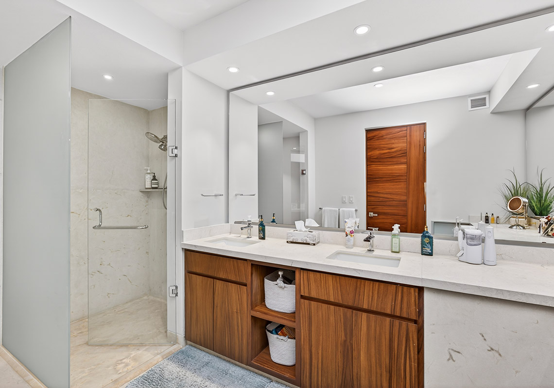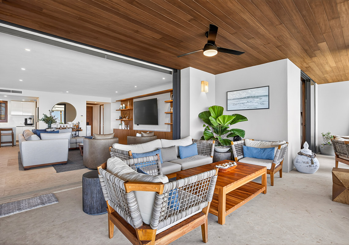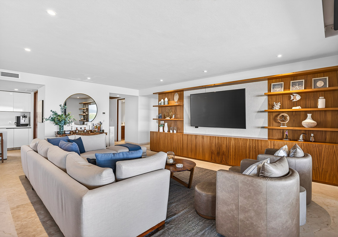 TAU 411 features a spacious 3-bedroom, 3.5-bathroom layout with light-filled interiors and expansive terraces with private plunge pools, perfect for relaxing at home.