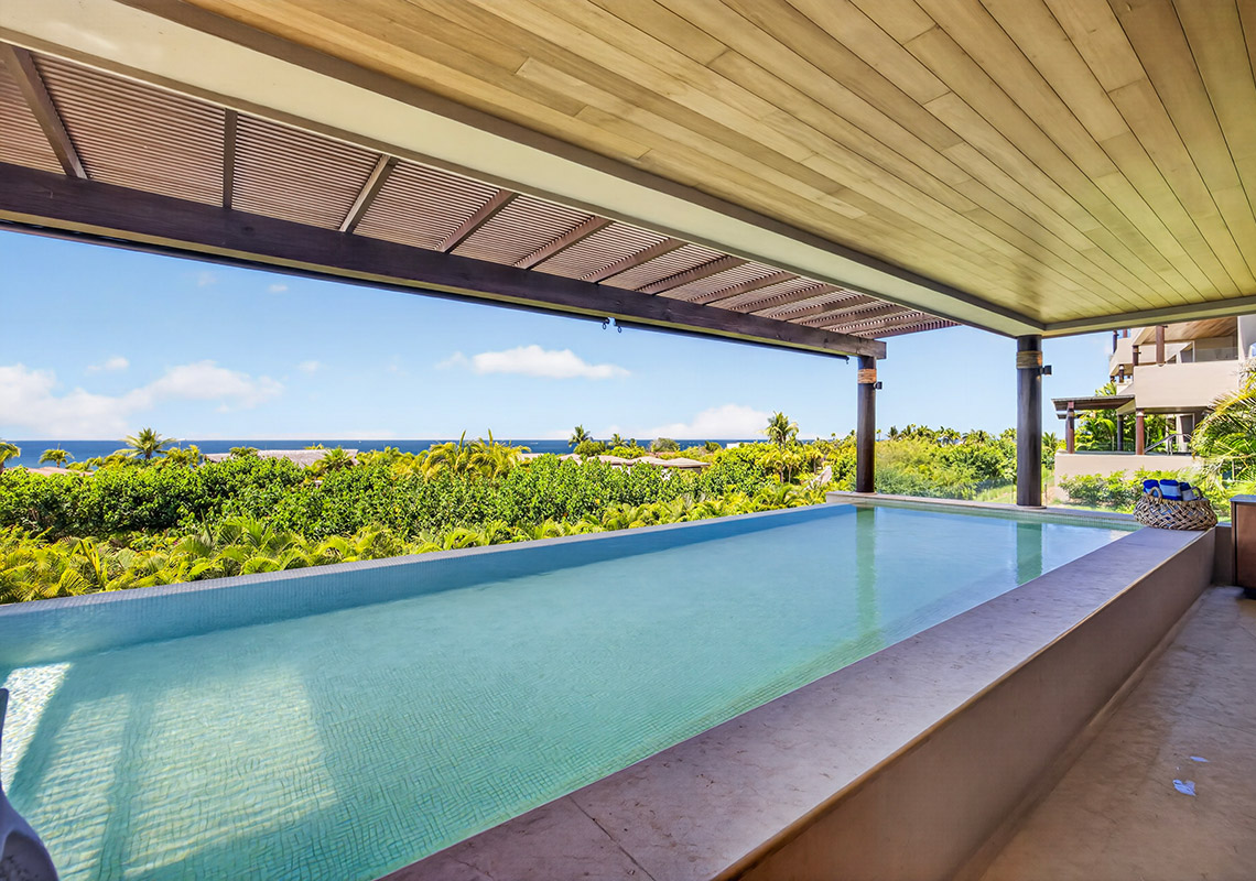 Large ground-floor Tau residences unit, over 4,200 square feet with expanded outdoor living terrace and oversized private plunge pool, very private location, super water views as well as lush greenery surrounding.  A must-see to appreciate!