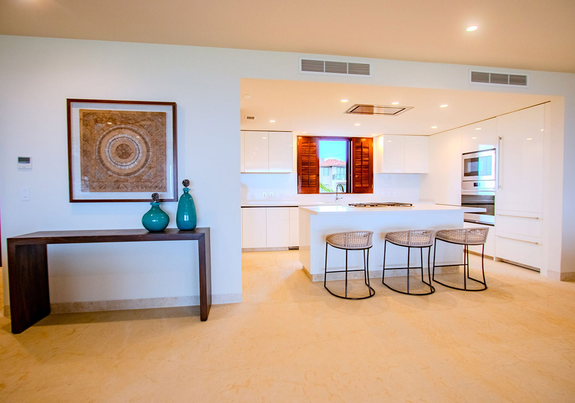 Gorgeous brand new TAU Residence unit on the 3rd floor with fantastic water and golf course views! Very spacious, light and bright, views front to back, sparking private plunge pool on the private terrace. All 3 bedrooms enjoy the amazing views and outdoor terraces. Modern upscale white kitchen with all the best appliances. Never lived in, move in ready!